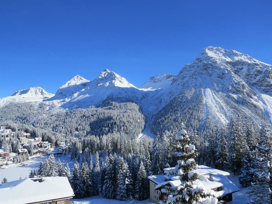 Arosa liegt auf 1’800m, eingerahmt von einer imposanten Berglandschaft.