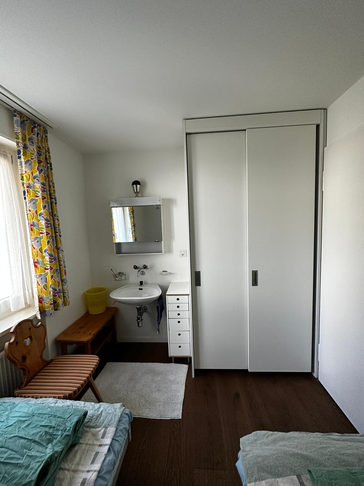 - Schlafzimmer klein, mit zwei einzelnen Betten, Doppelschrank und Lavabo